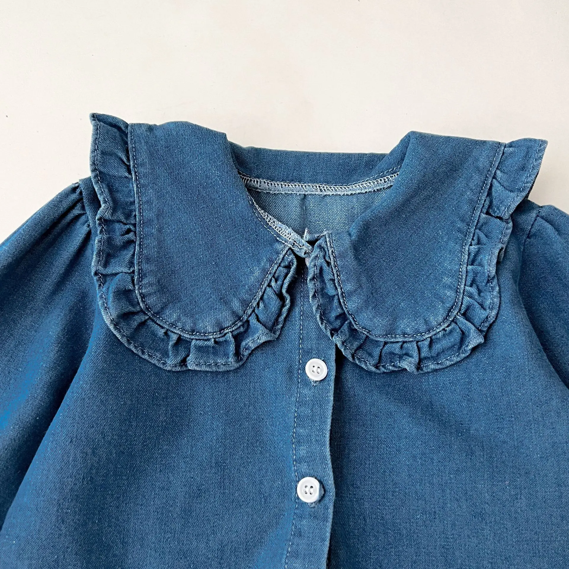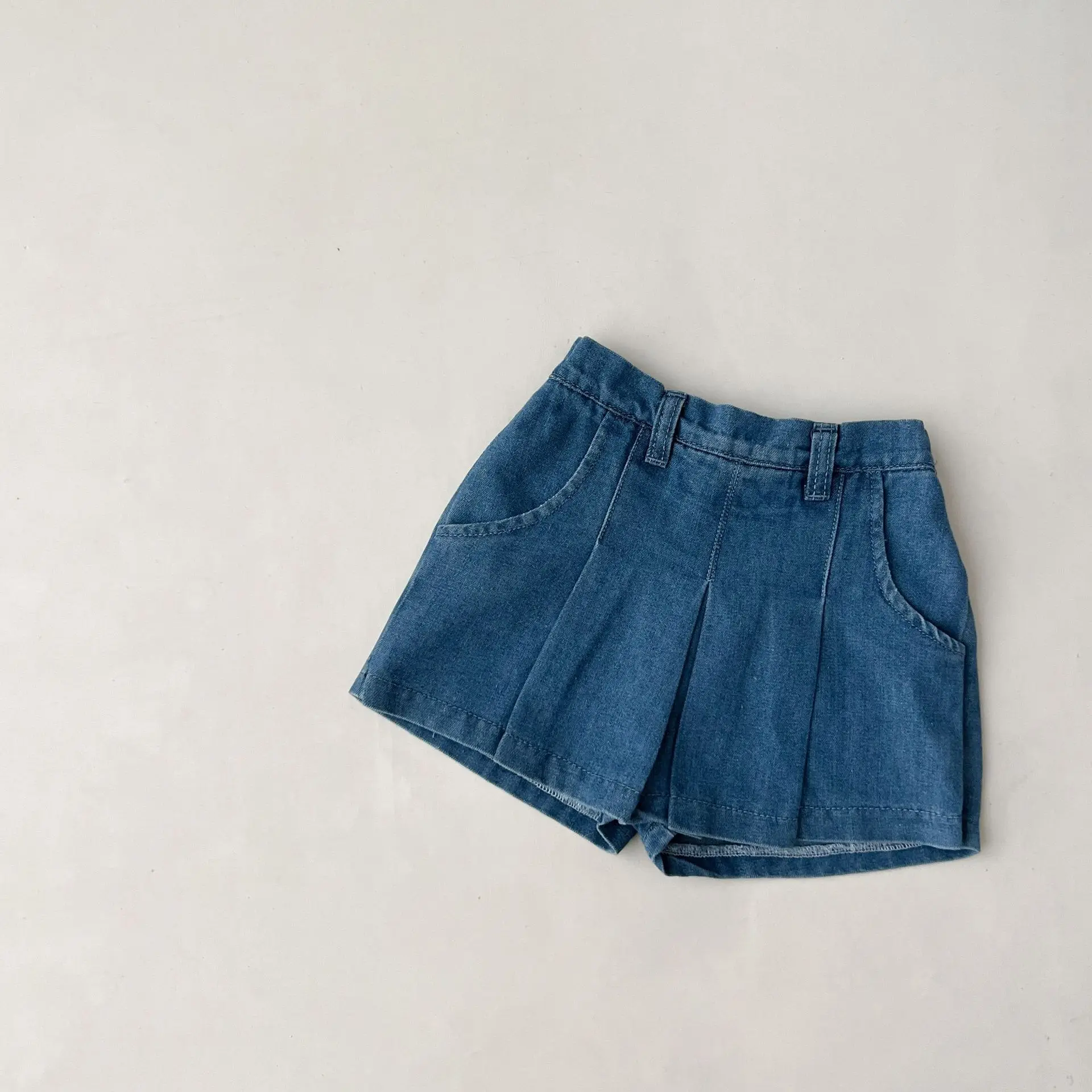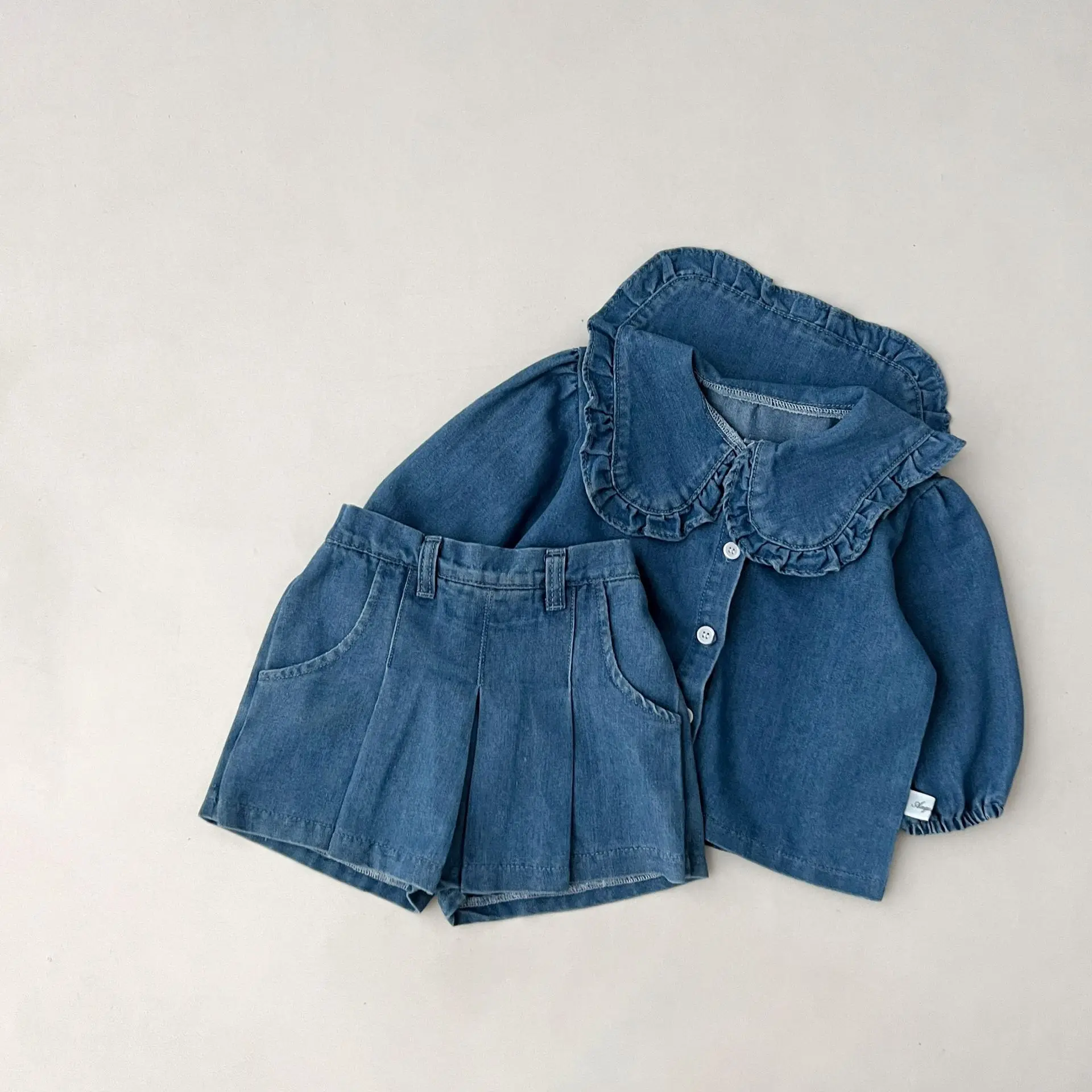 fashionable childrens set denim top+jeans short Korean version girl casual sports two-piece set 0-6 year old childrens cloth