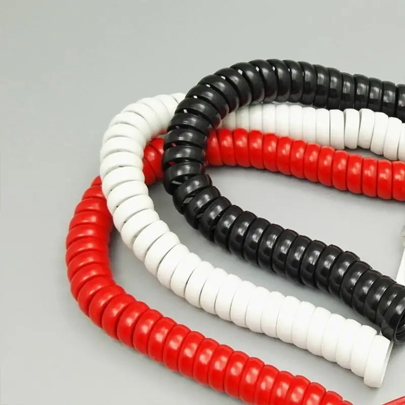 Four-core Telephone Handset Cable Cord 6Ft Modular Coiled Telephone Handset Cord Black/Red White Curly 1.85m/pc