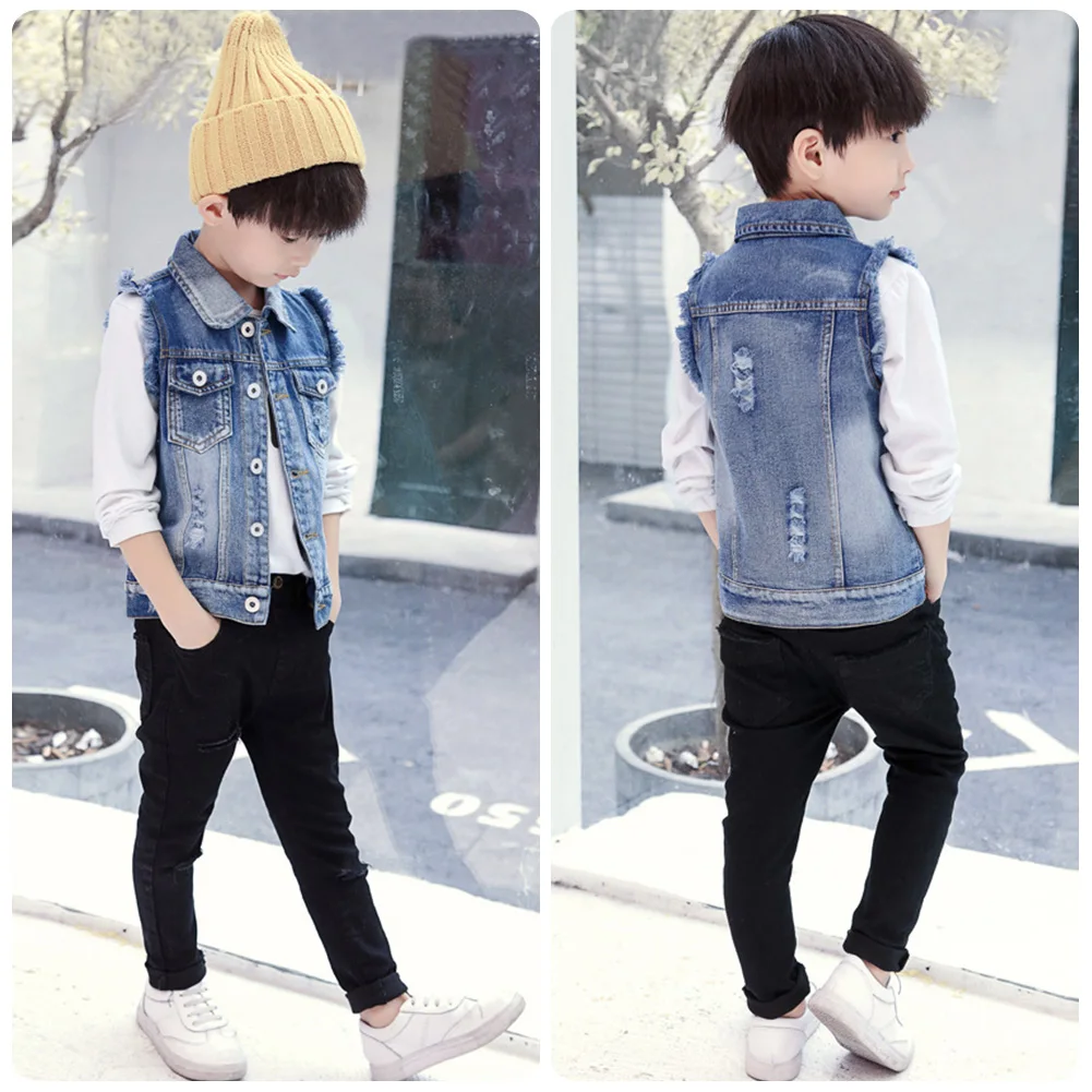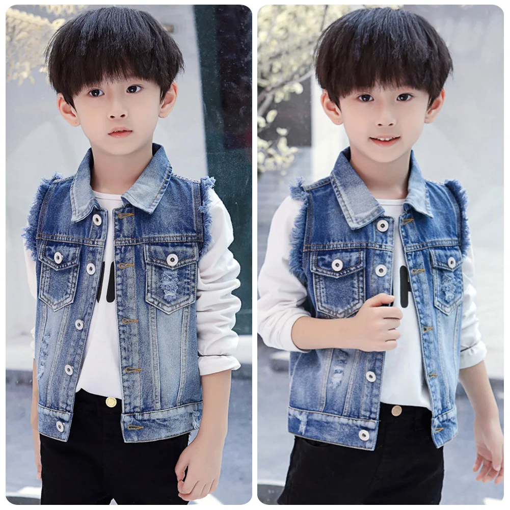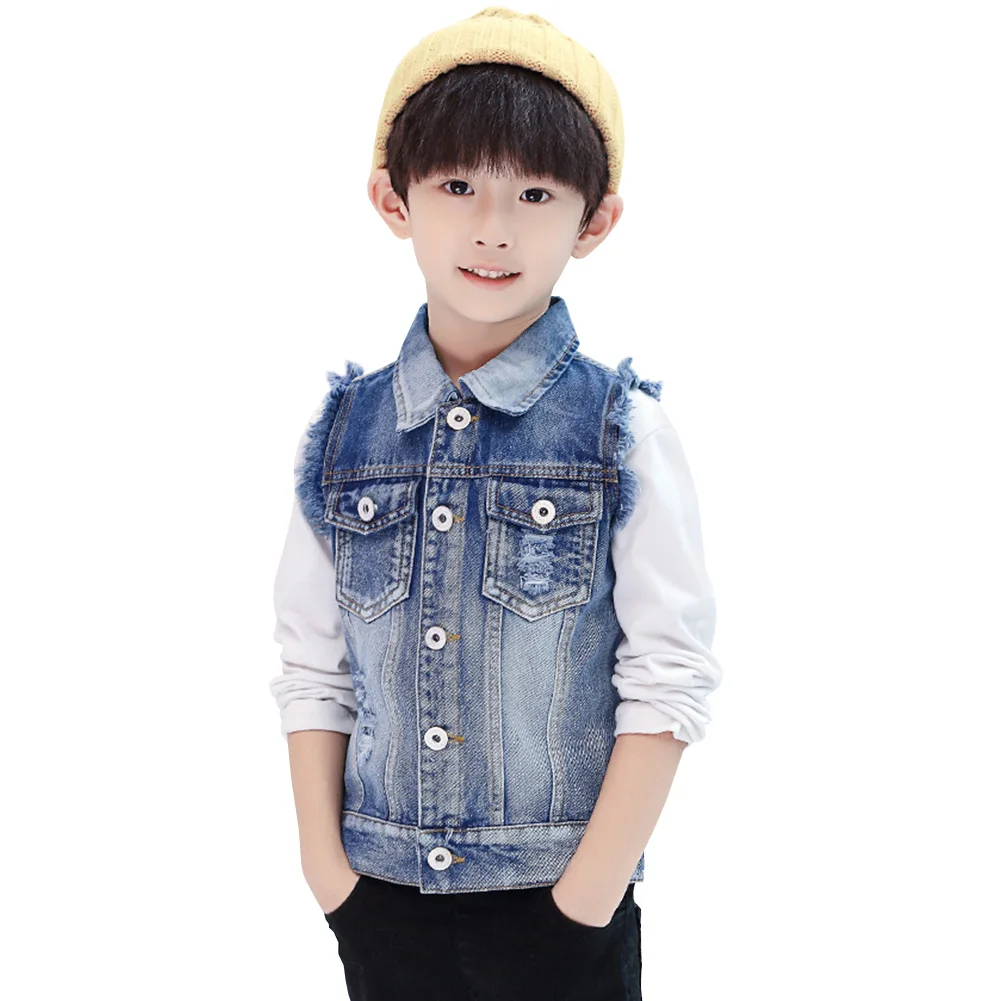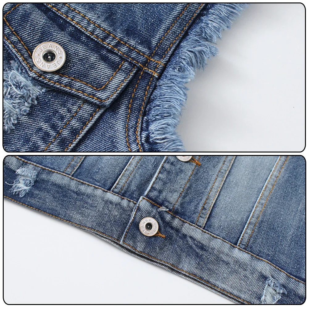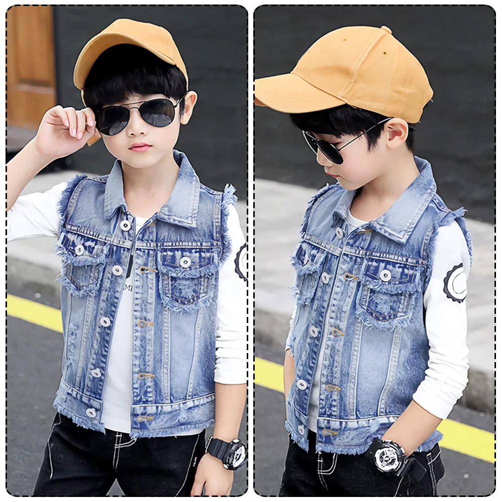 Kids Denim Jacket Boys Vest Coat Sleeveless Tassels Lapel Outerwear Casual Button Children's Cowboy Waistcoat Girls Denim Vest