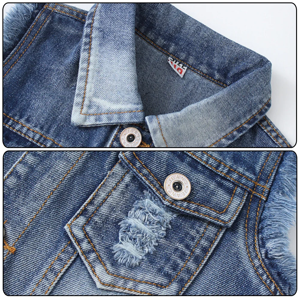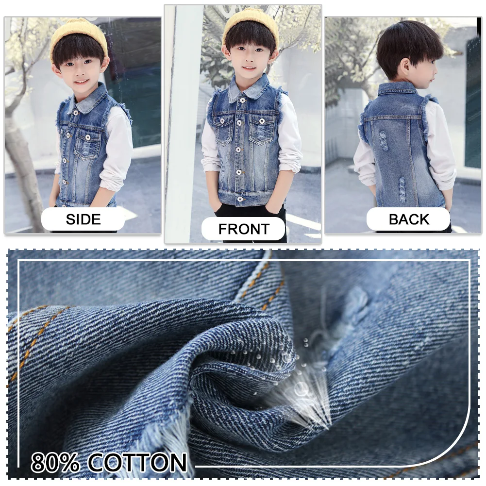 ✯High-quality materials: denim jacket and vest for children, which can be worn by both men and women; made of denim cotton, soft, comfortable and breathable. Suitable for spring and autumn.