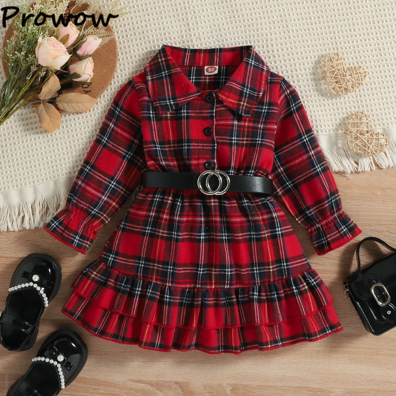 Kids Dresses For Girls Turn Down Collar Belted Red Plaid Shirts Dress Children Clothing Christmas Dresses For Girls