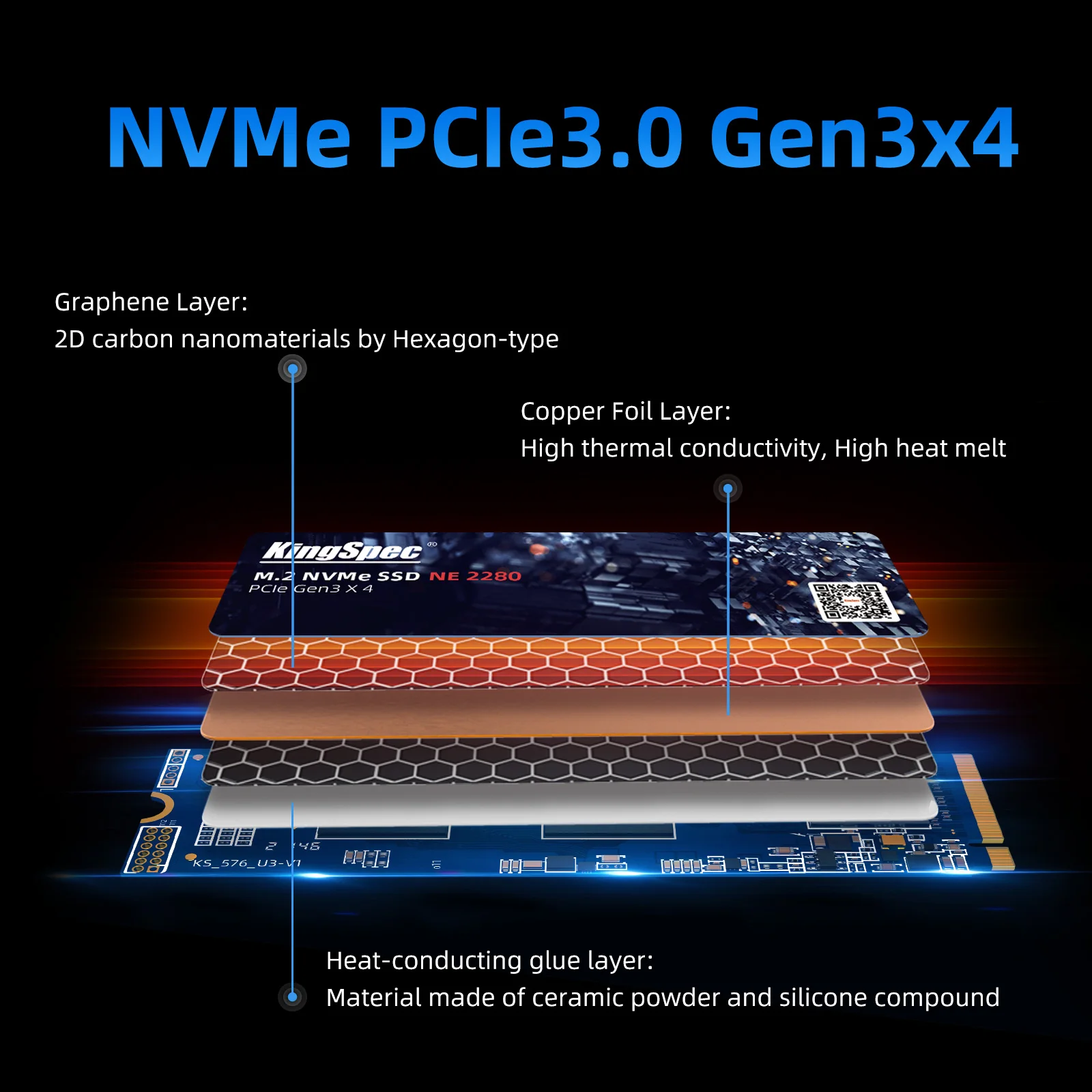 KingSpec NVMe M.2 PCIe 2280 SSD,High Speed & Rock-Solid Reliability