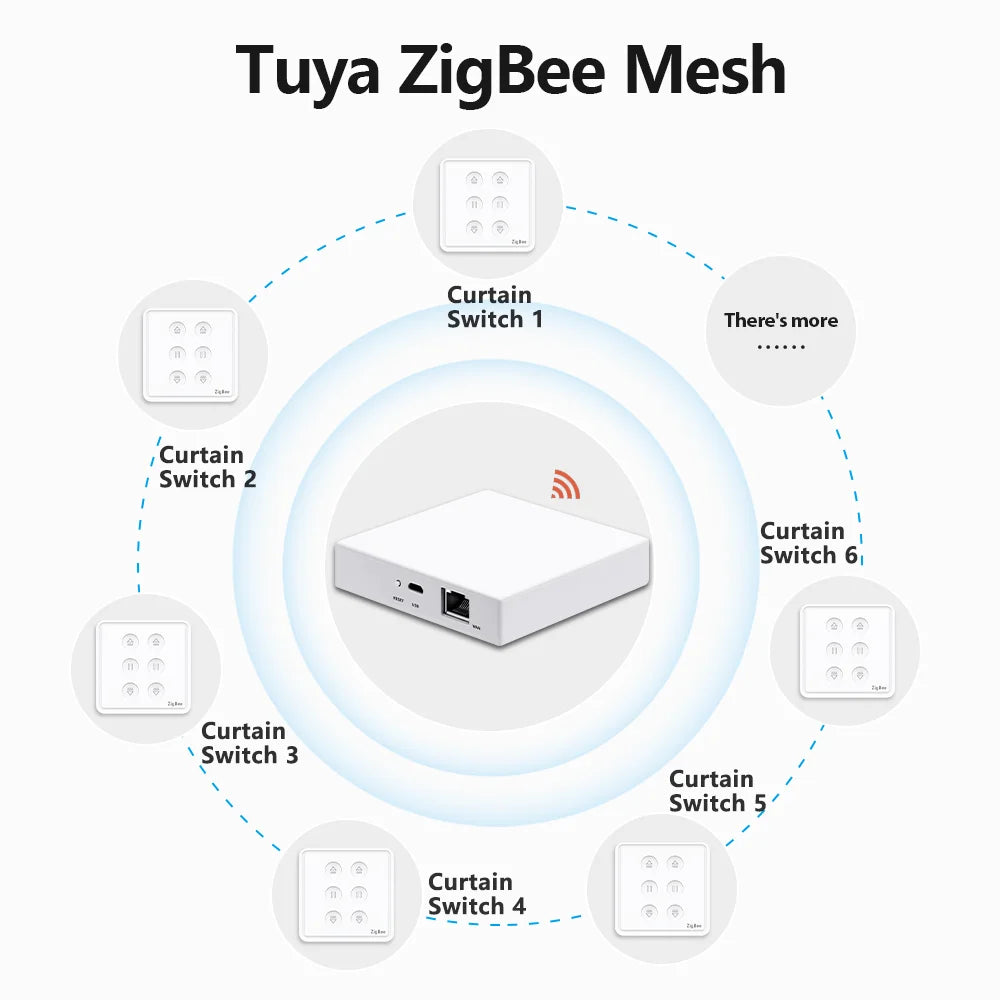 - Tuya ZigBee 3.0 curtain switches need work with Tuya ZigBee Hub, please make sure you already have a Tuya ZigBee Hub, you can click the link in the picture to buy the ZigBee hub.