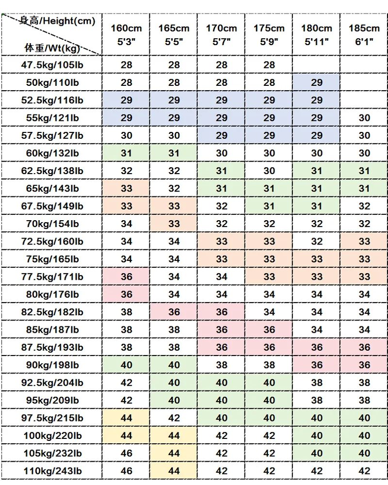 Size: 29,30,31,32,33,34,36,38,40,42,44,46,48,50,52,54,56
