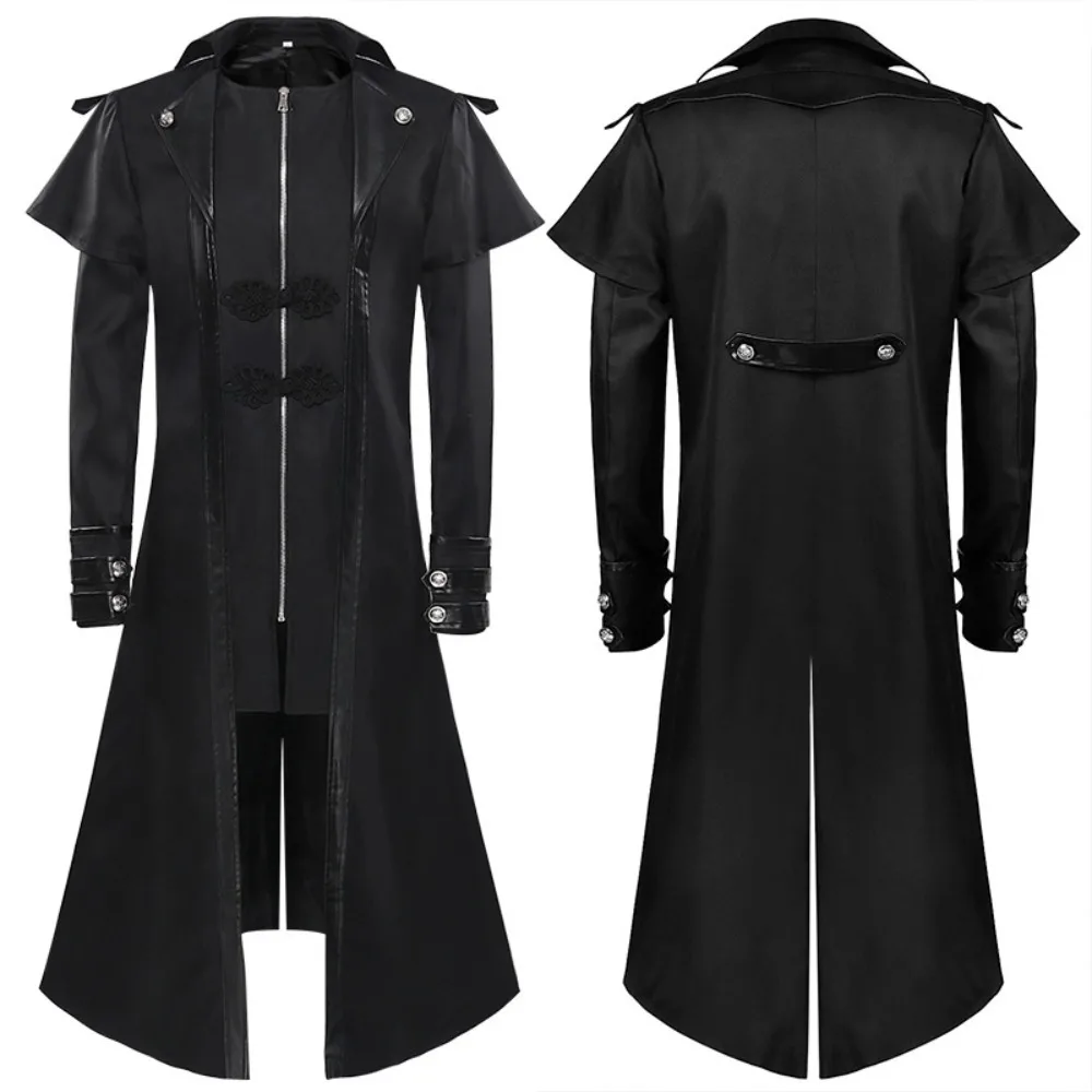 New European and American Men's Formal Attire - Medieval Retro Costume Men's Mid-Length Punk Retro Tailcoat