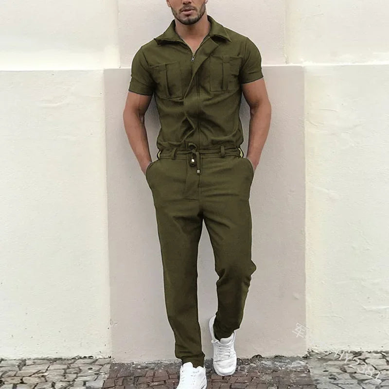 New Mens Rompers Pants Casual Loose One-piece Suit Overalls Fashion Short Sleeve Jumpsuit Streetwear Men Ropa De Hombre