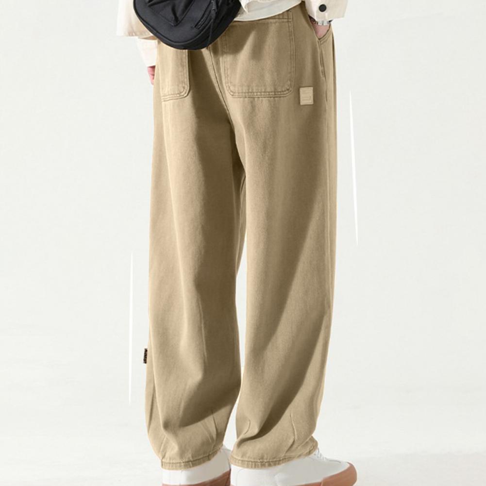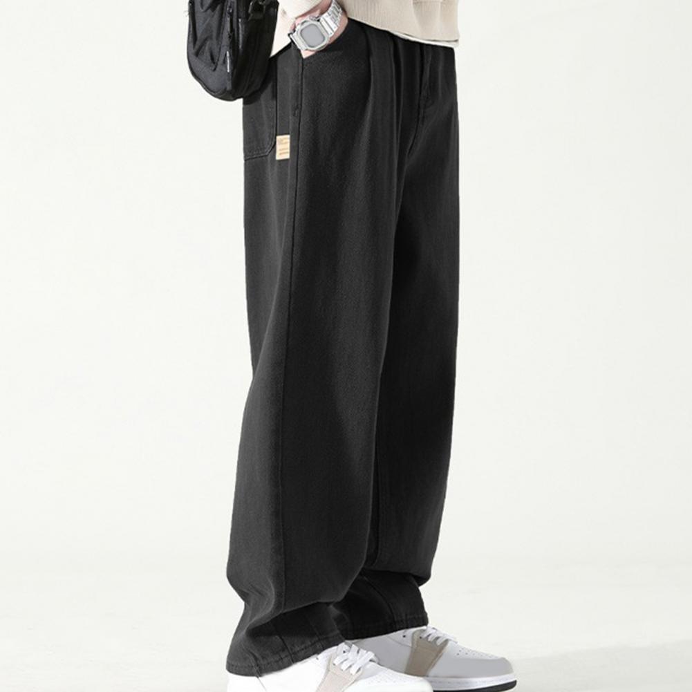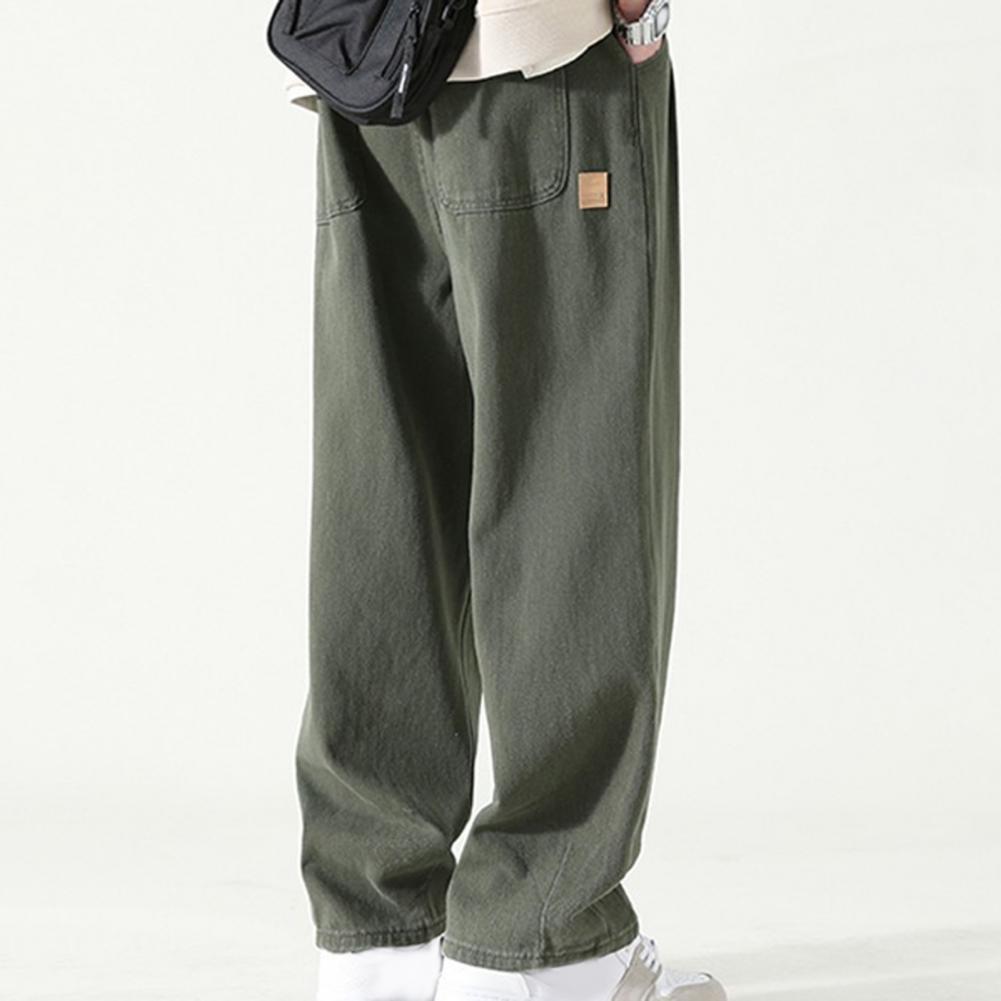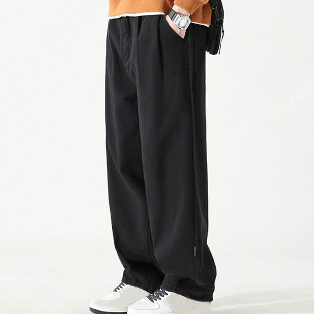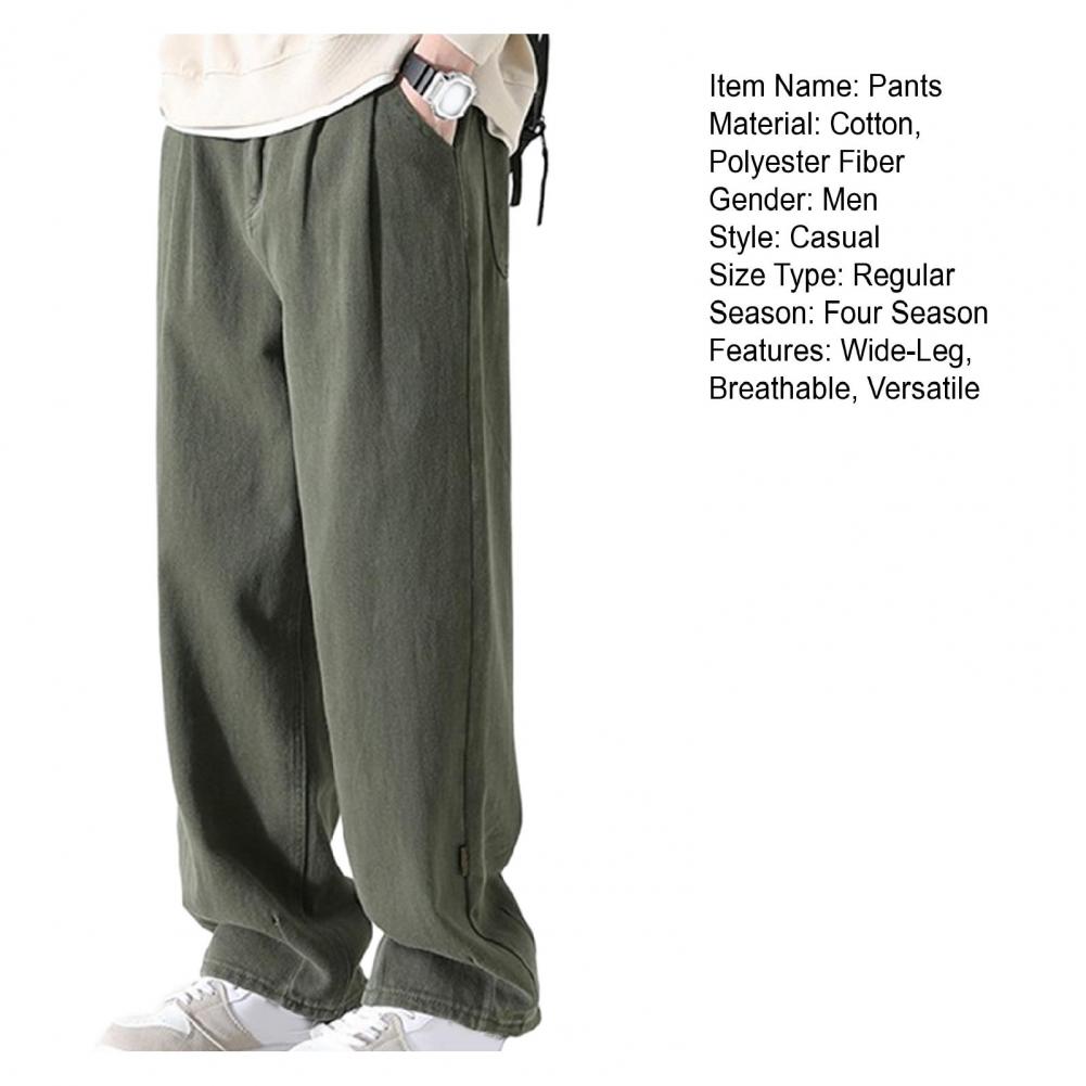 Pants for Men Trendy Wide-leg Trousers Breathable Wide-leg Men's Work Pants Retro Style Versatile Solid Color Trousers
