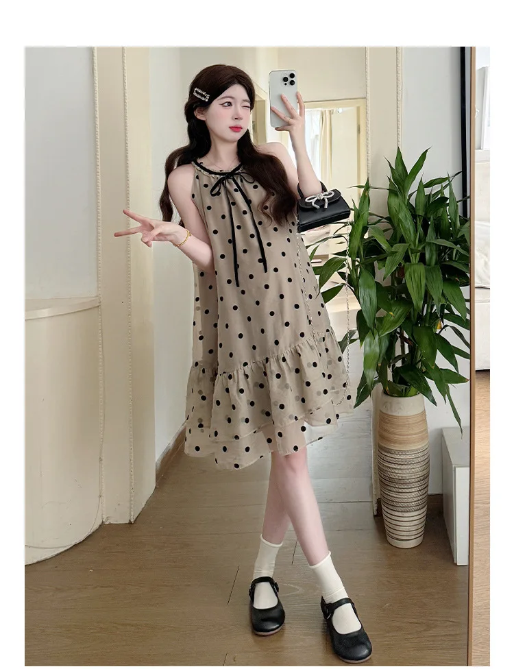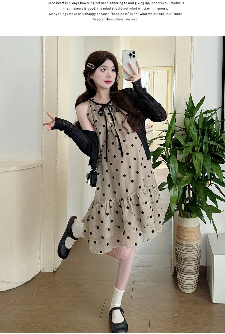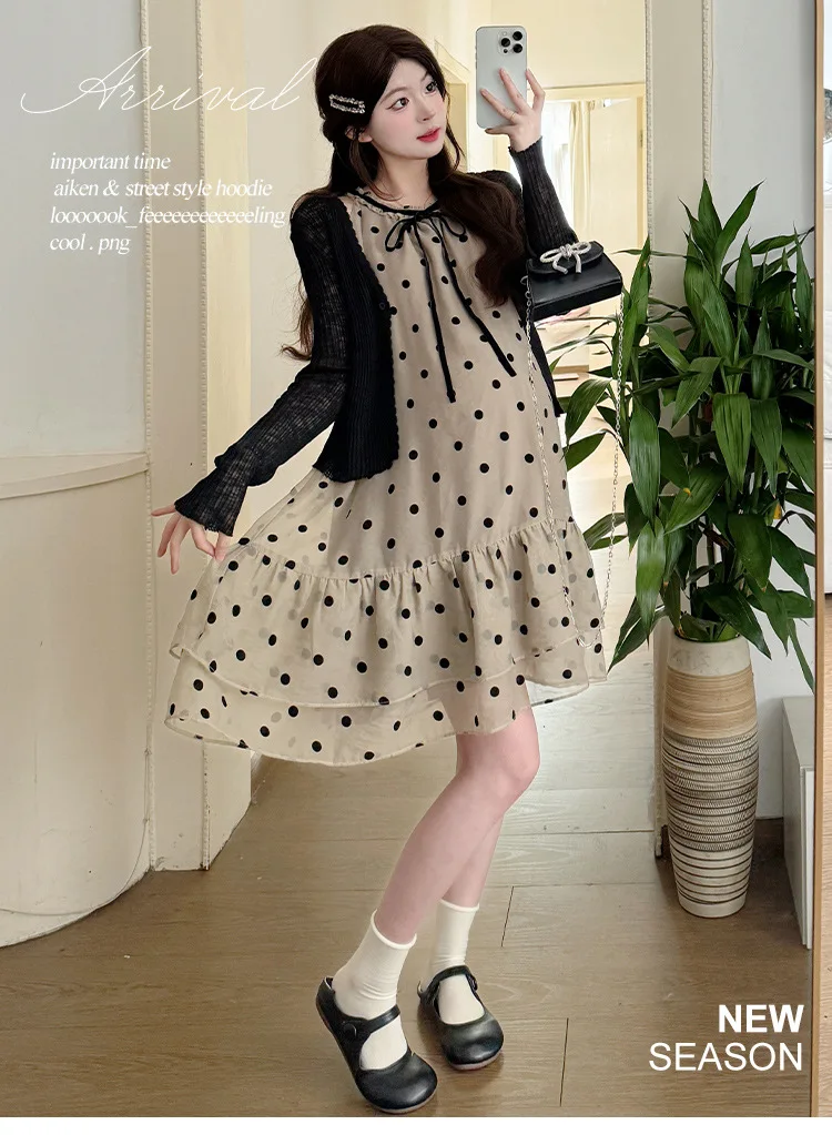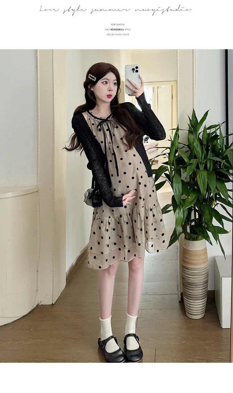 Pregnant Women's Clothing 2025 Summer New Style Reduced Age French Polka Dot Dress Two-piece Set