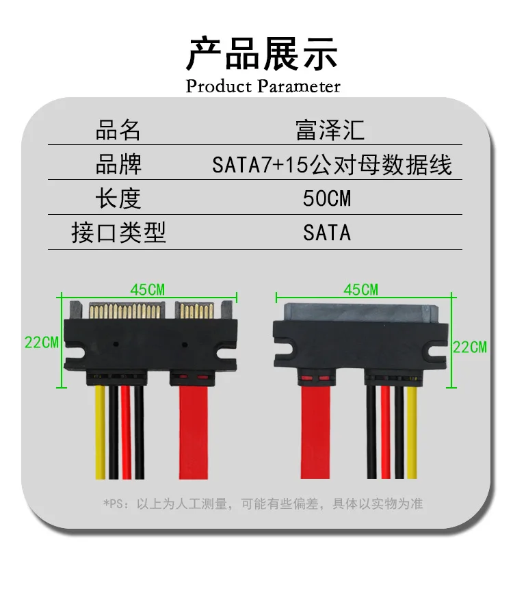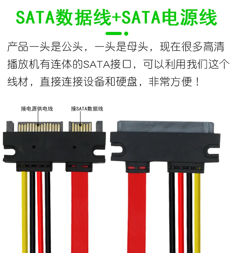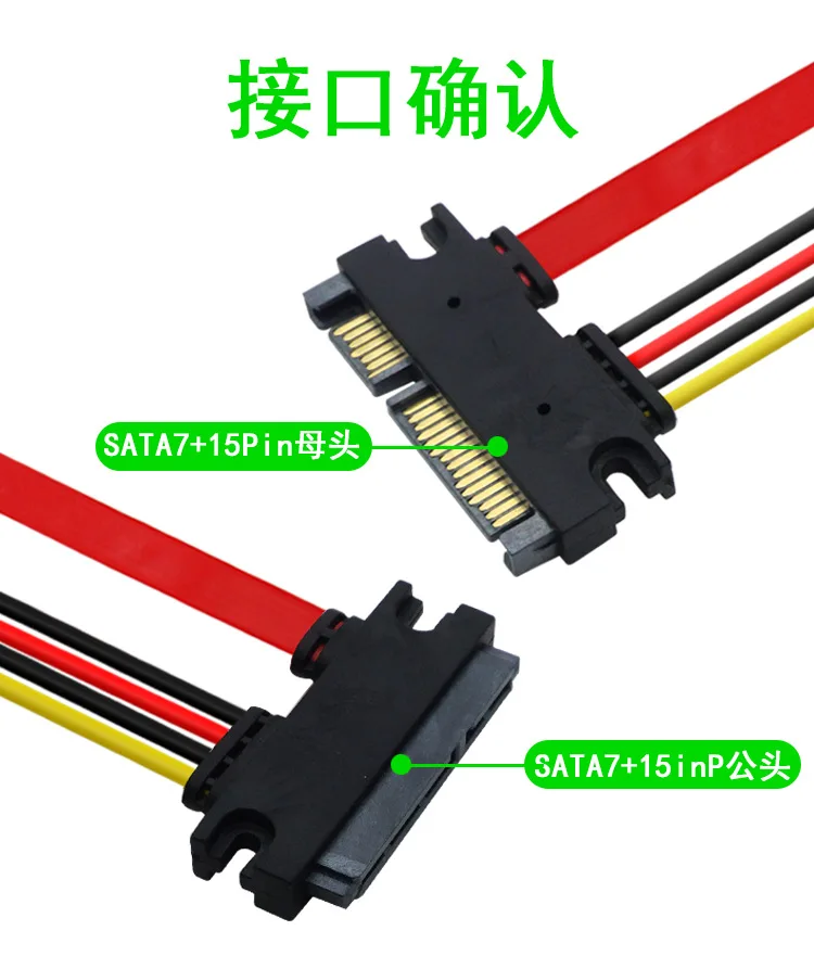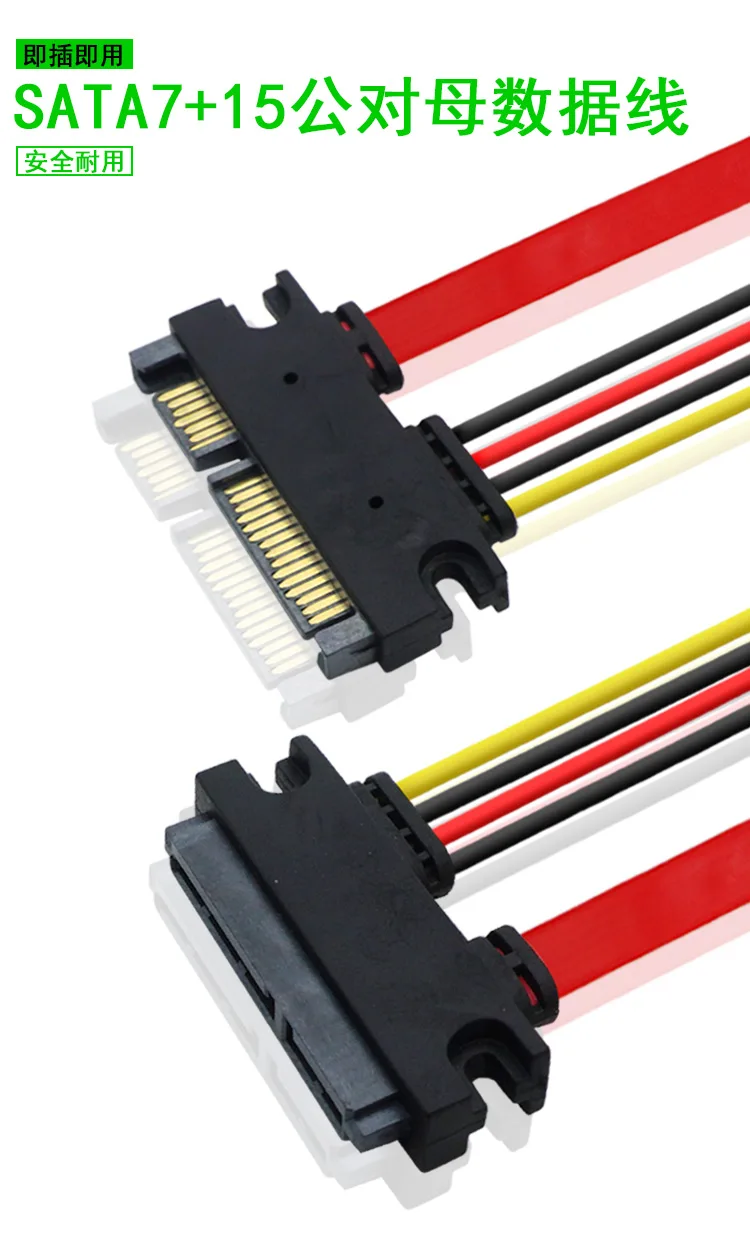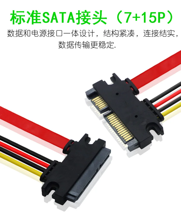 Red 0.3M 0.5M 7+15 22Pin SATA Extension Cable Male To Female 22 Pin Serial ATA Data Power Cord for 2.5 3.5 Inch HDD SSD