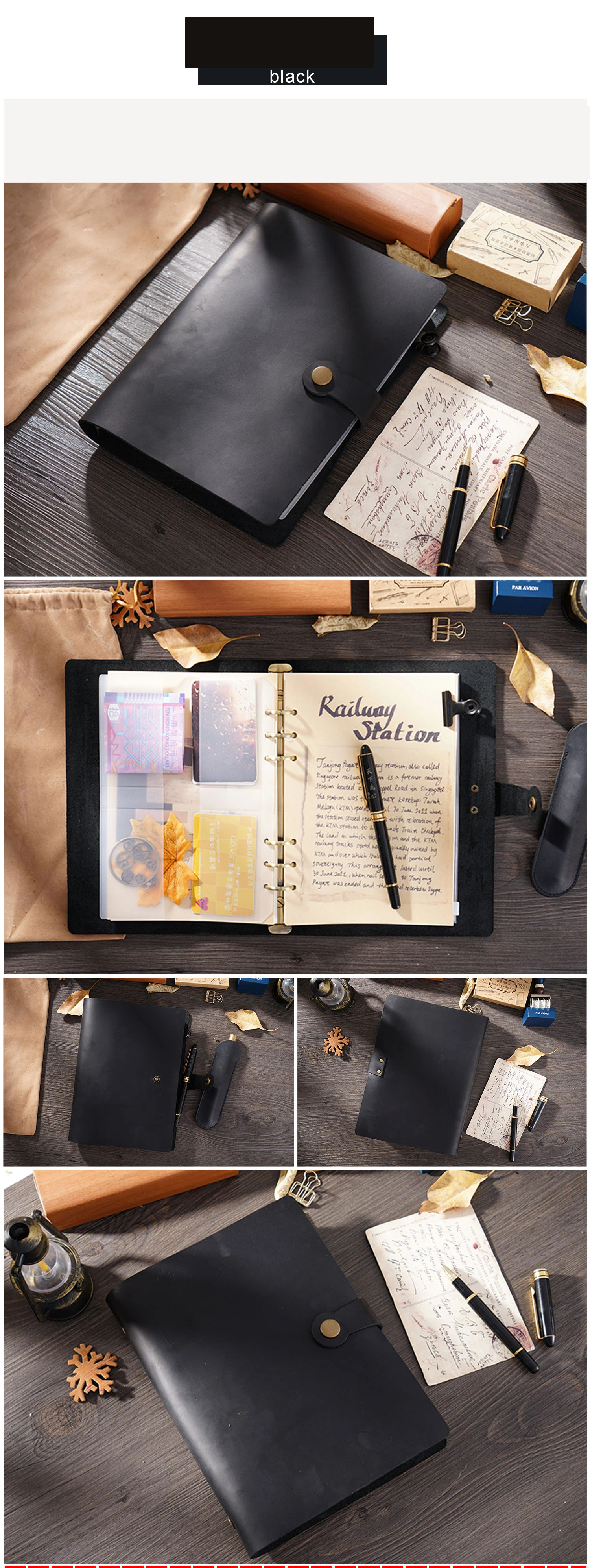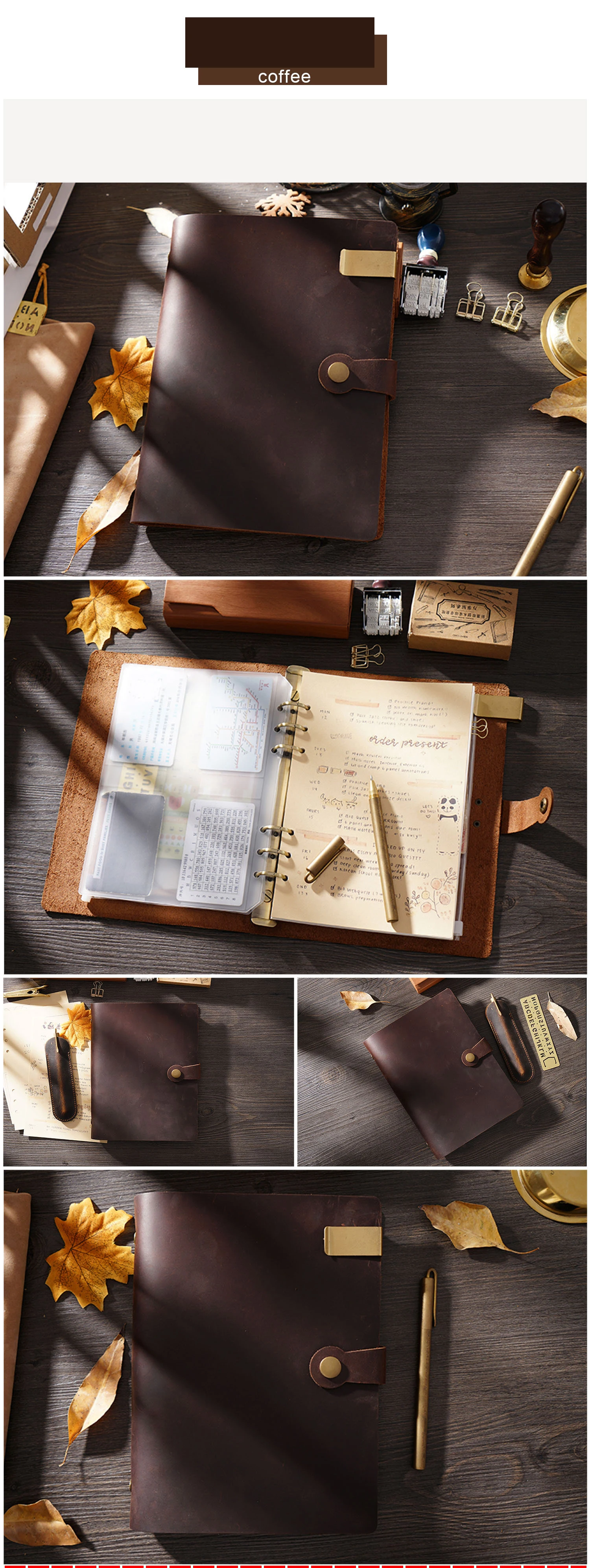 Retro Cowhide A5 Loose-leaf Notebook Handmade European-style 6-hole Notepad Crazy Horse Leather Book for Friend's Birthday Gift