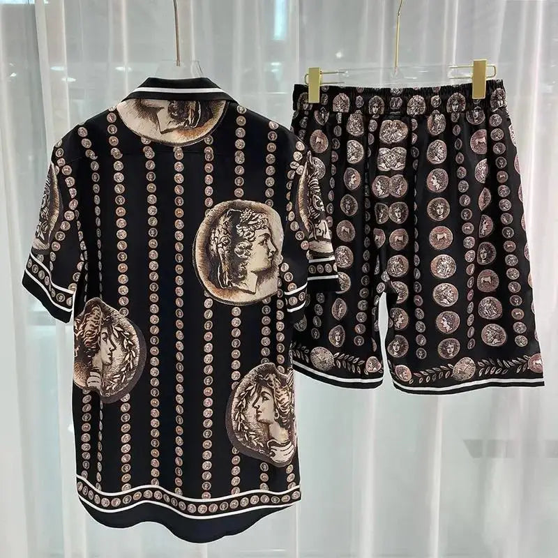 Ropa Hombre Royal Luxury Men Shirt Sets Vintage Pattern Character Printed 2 Piece Hawaiian shirt Suit Casual Oufits Short Sleeve