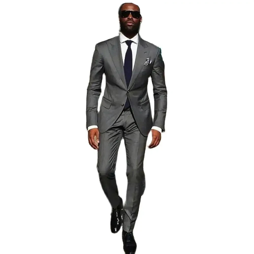 Ropa Mombre Grey Men's Suits Blazer Single Breasted Peaked Lapel Formal 2 Piece Jacket Pants Slim Fit Luxury Business Full Set