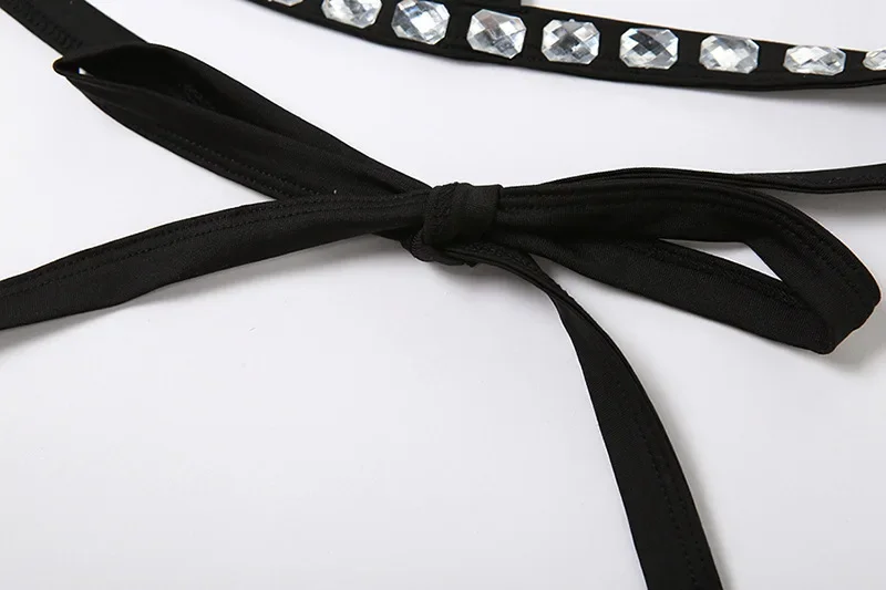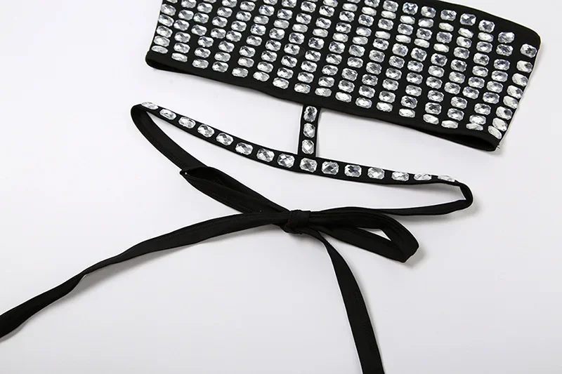 Sexy Women Edgy Clothes Y2k Accessories Beading Hot Crop Top Neck-Mounted Rave Club Outfits Bandage Camison Verano Ropa De Mujer