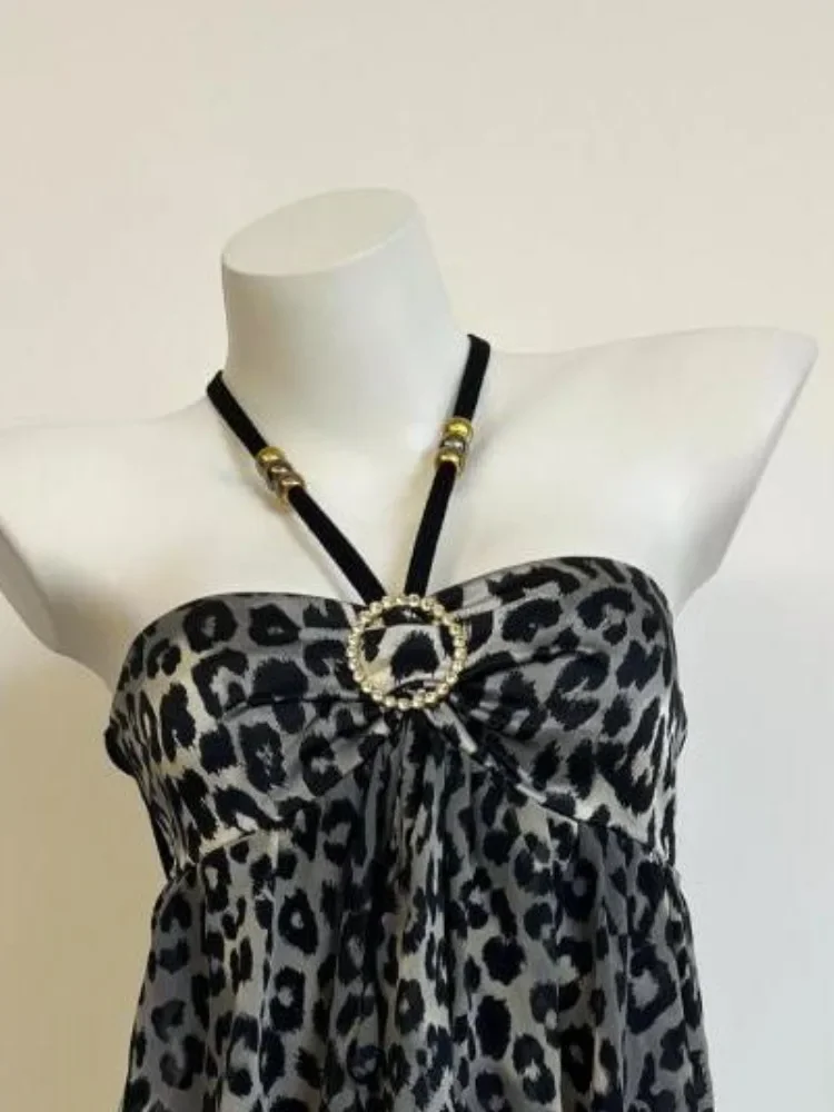 Women Clothing Summer Crop Tops 2025 Ropa Mujer Halter Backless Loose Vest Sweet Korean Camis Korean Leopard Print Sexy Tanks