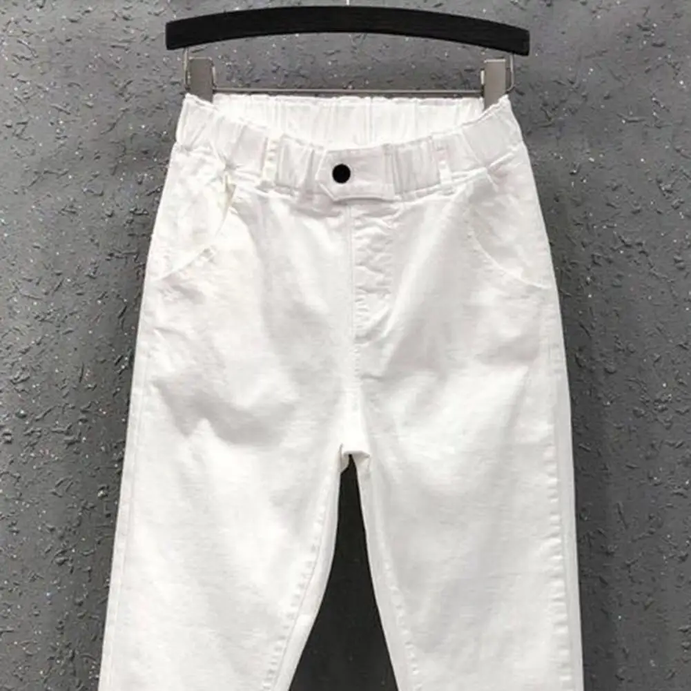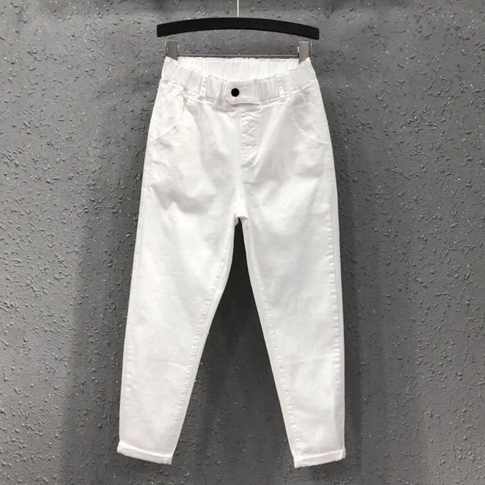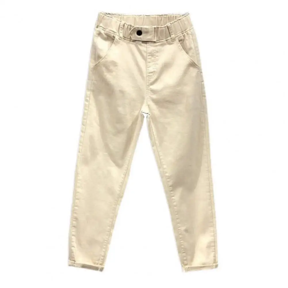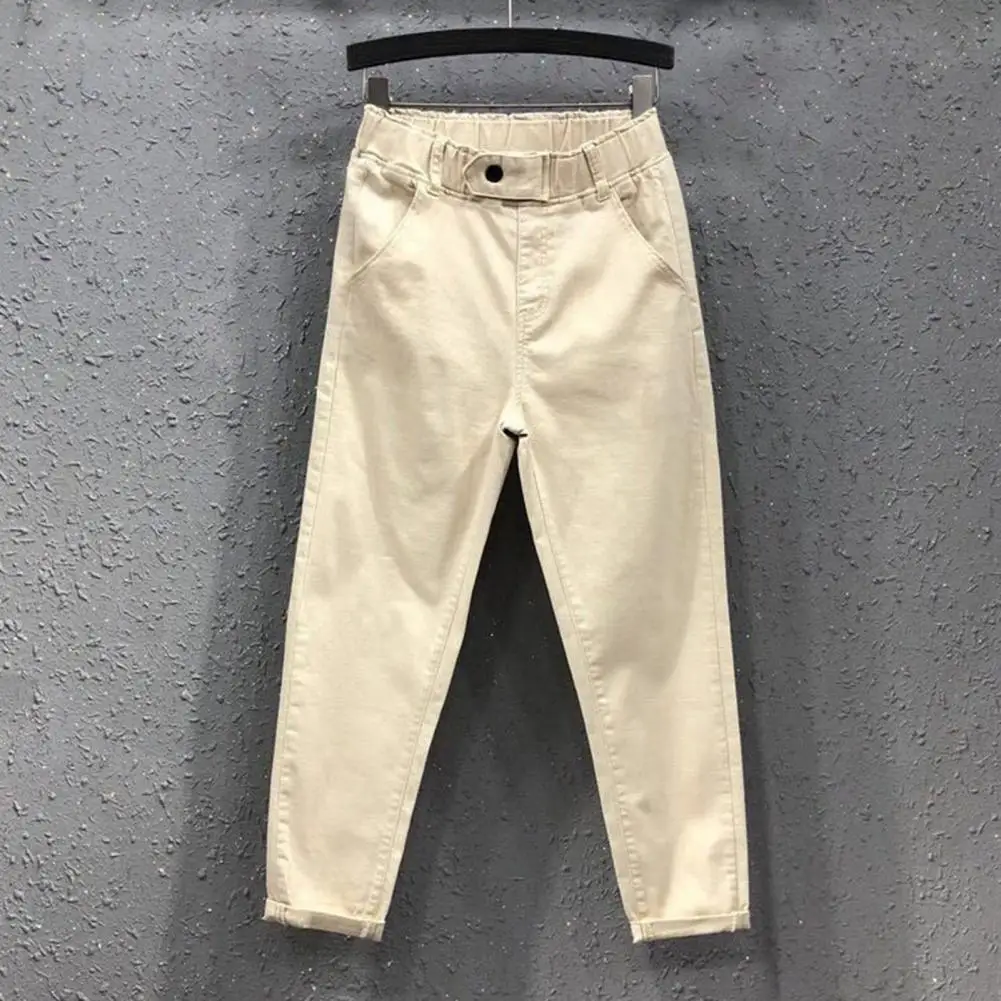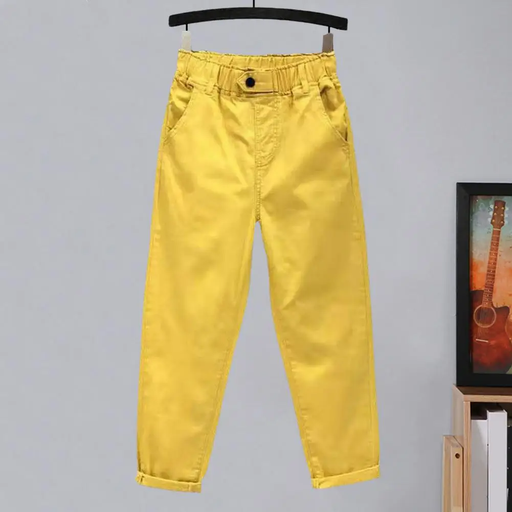 Solid color trousers are designed for comfort and fashion, featuring an elastic waist for a perfect fit.