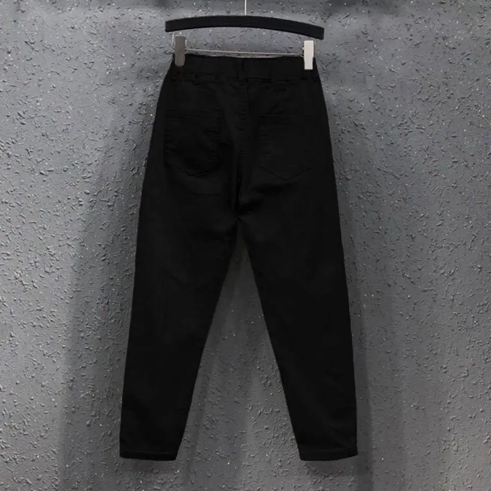 Women Casual Pants Mid-rise Elastic Waist Harem Trousers Solid Color Wide Leg Long Pants with Pockets Streetwear