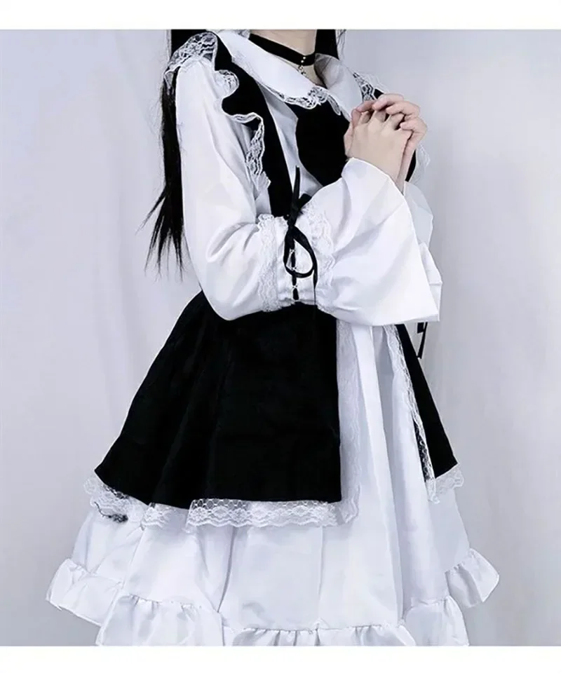 Women Maid Outfit Lolita Cosplay Cute Sexy Erotic Kawaii Cafe Costume Black White Men Uniform Apron Dress Cute Bow Mucama