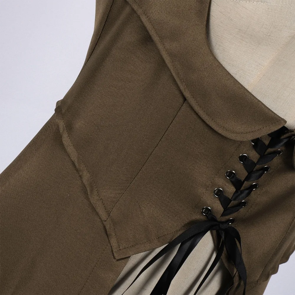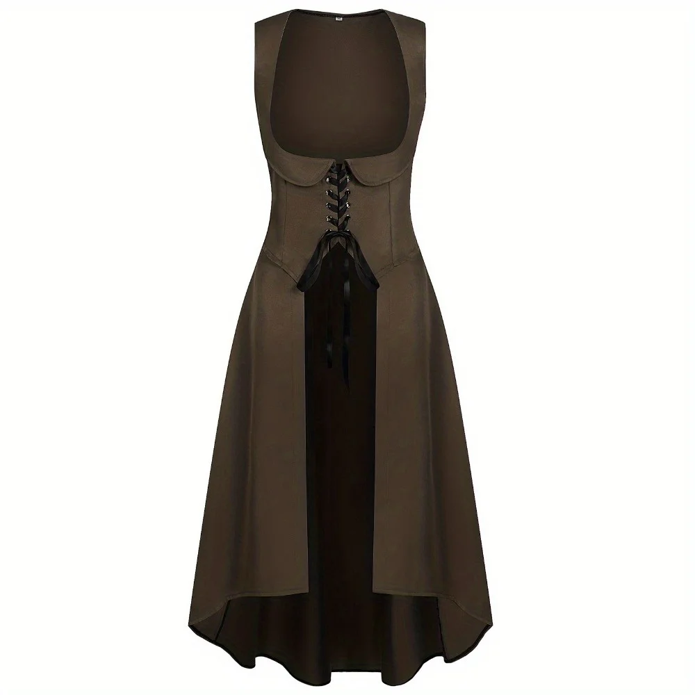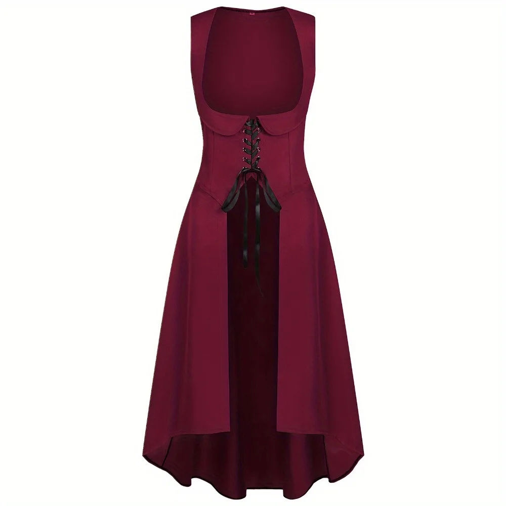 Women Renaissance Dress Peasant Pirate Medieval Tight Waist Apron High Low Dress
