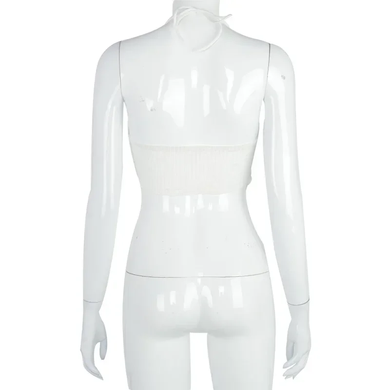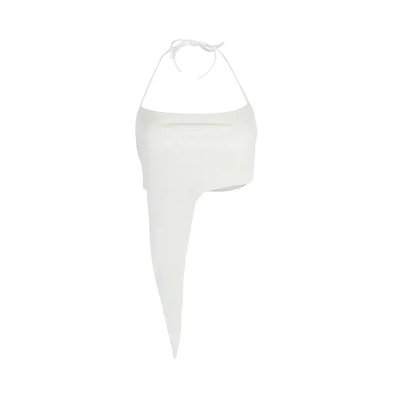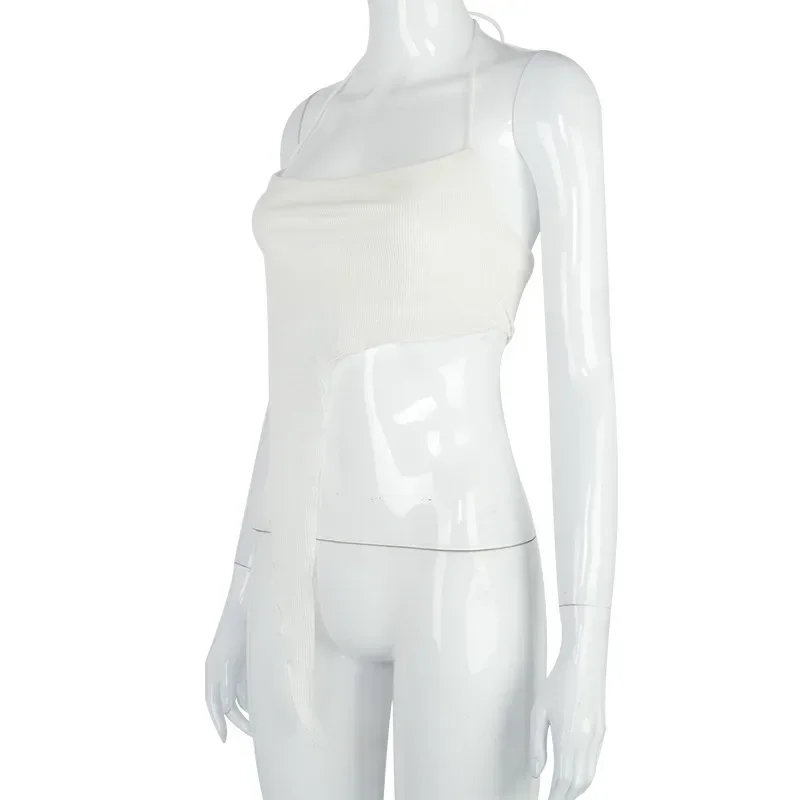 Women Streetwear Edgy Clothes Y2k Solid White Halter Tops Accessories Asymmetrical Ropa Mujer Neck Mounted Sexy Camis Corset Top