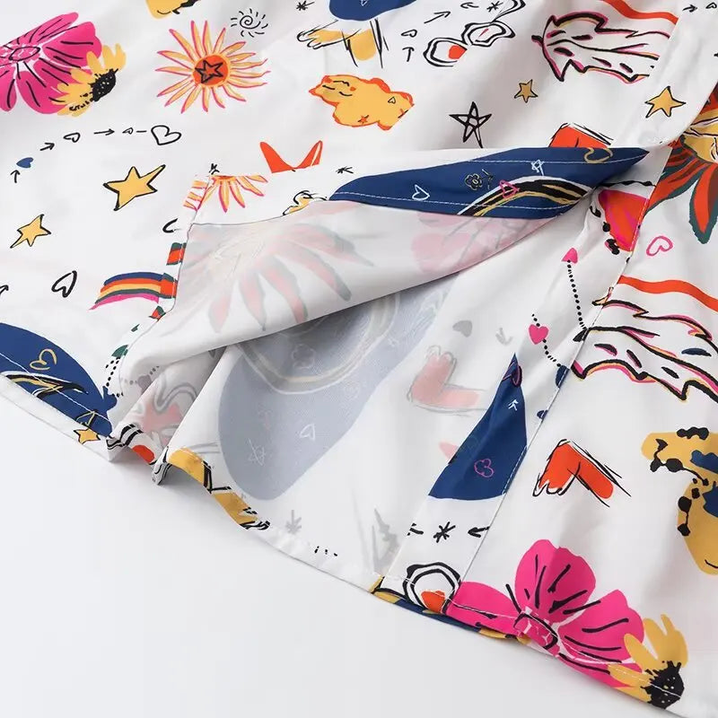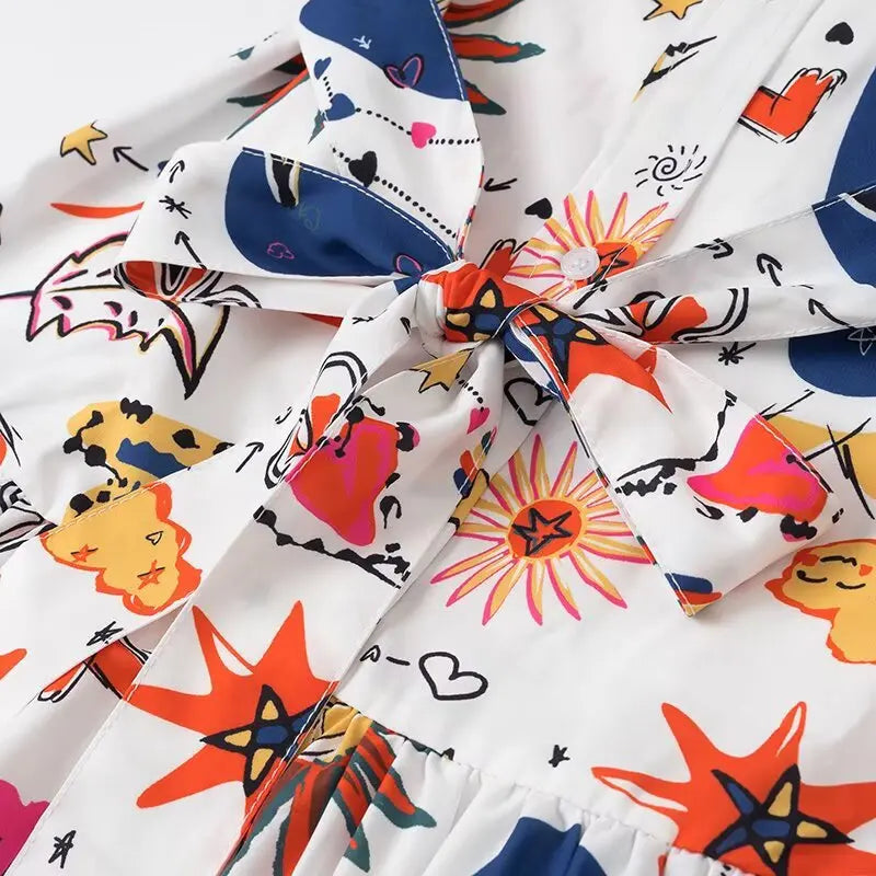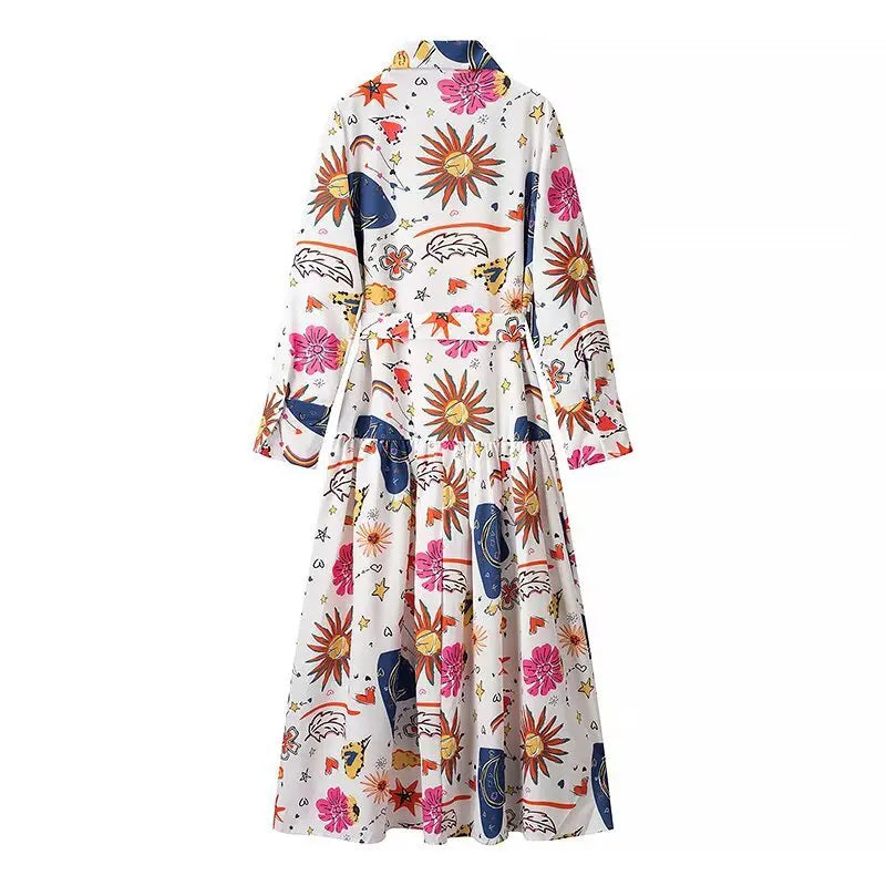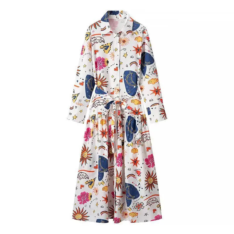 Women's clothing 2025 autumn new products European and American fashion simple casual printed lace-up long-sleeved dress