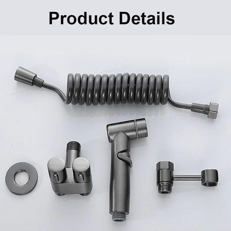Zinc Alloy High Pressure Bidet Sprayer Kit - Bathroom Toilet Cleaner Spray Gun with 1 In 2 Out Angle Valve, Grey/Silver/Black
